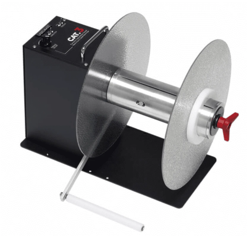 8.6″ wide “Quick-Chuck″ rewind Shaft, with 2 Label Flanges and Sensor Arm.