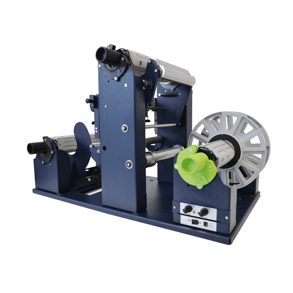 This label matrix remover gives the user the ability to remove the waste material from printed or blank pre die-cut rolls of labels up to 8.86″ (225mm) wide onto a 3″ cardboard core and having an outside diameter up to 9.84″ (250mm). The finished labels will be rewound face out only.