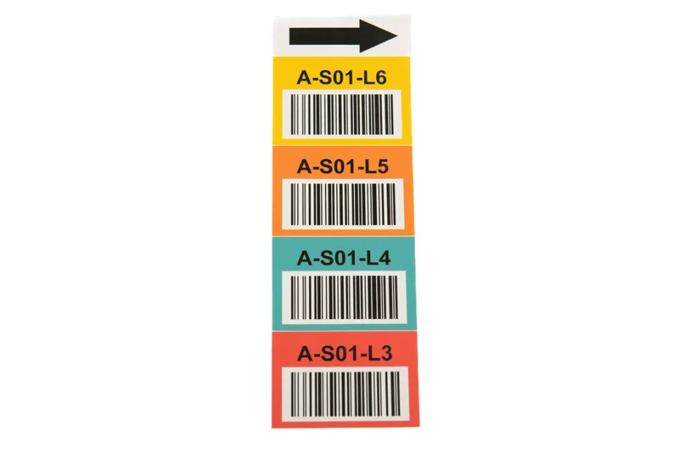 Overhead or conduit or cable-mounted signs for bulk and floor storage that scan from distance and keep flow moving. Numbering, zone colors, and barcode formats tailored to your map.